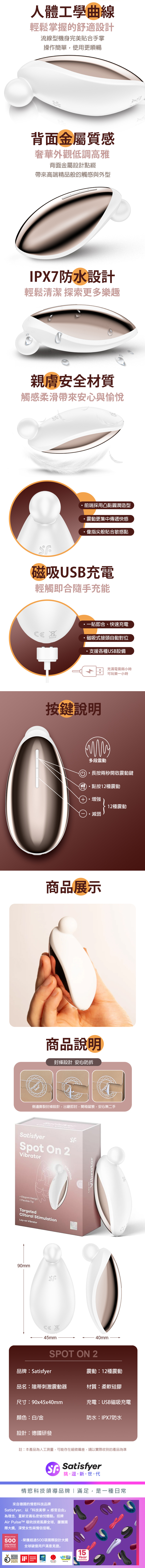 品名:Satisfyer|Spot On 2|陰蒂震動器 白金