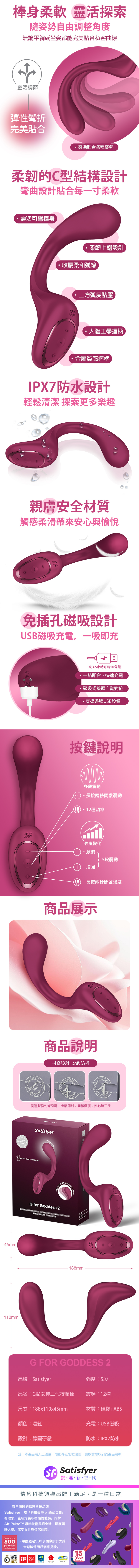 品名:Satisfyer|G for Goddess 2|G點女神二代 GC點按摩棒 深紅